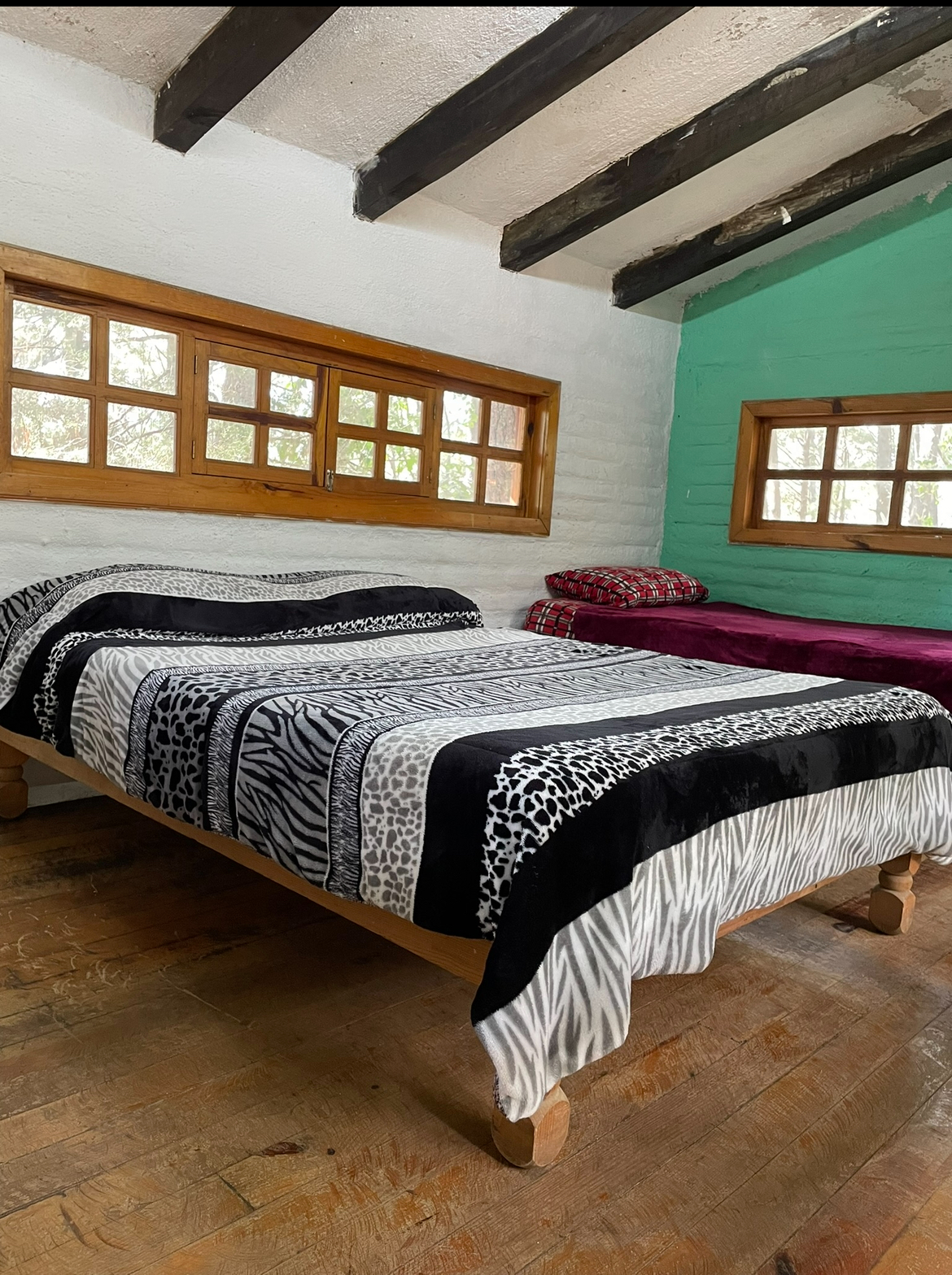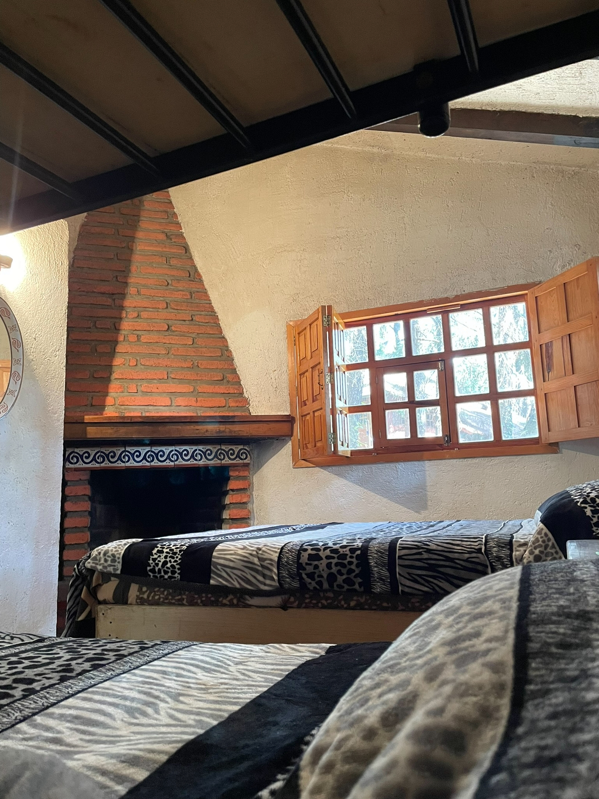 1 habitacion con 2 camas matrimoniales, 1 ind y chimenea